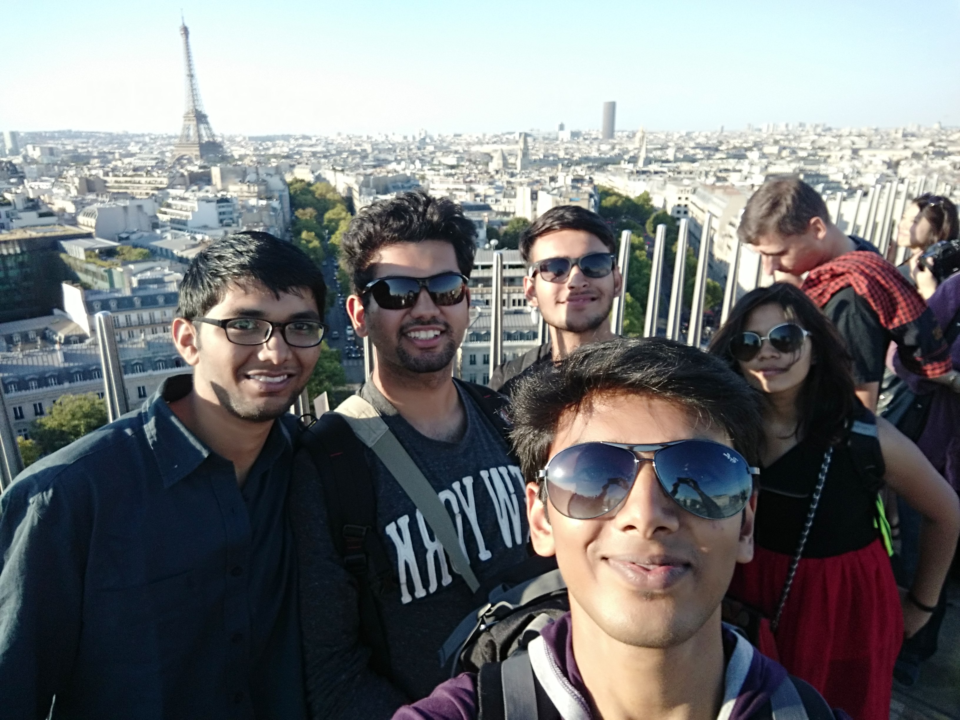 We ascended to the top, where we spent about 2 hours, taking in the atmosphere and getting ourselves clicked with the Eiffel Tower! This is also where we finally met the others. They walked directly from the station to Arc de Triomph. ( Why buy a metro ticket when you can walk? π )